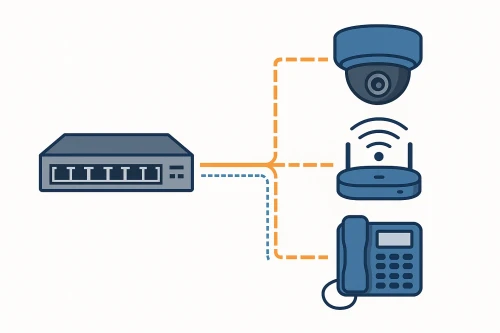 Основой любой PoE-сети являются сетевые коммутаторы с PoE-питанием. Они выполняют двойную функцию: передают данные и подают питание на устройства.