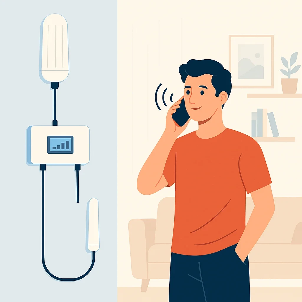 Чтобы снизить нагрузку на смартфон и улучшить качество связи, применяются специальные устройства — репитеры. Их принцип работы прост: они улавливают слабый сигнал от оператора, усиливают его и передают дальше.